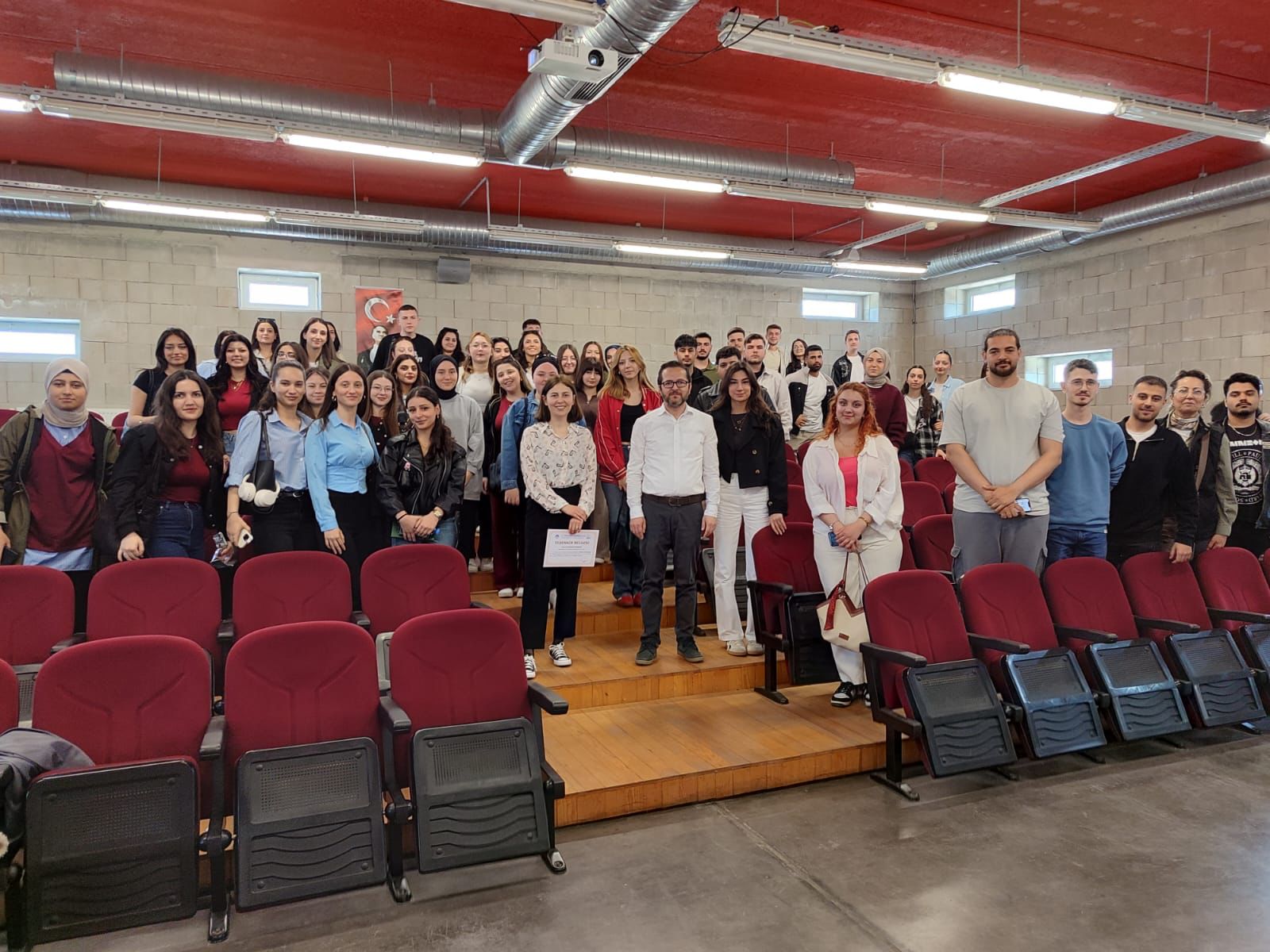 Etkinliğimiz Hamitabat Üretim ve Tic. AŞ. ‘den Sürdürülebilirlik ve ÇSG Mühendisi Sayın Meral YILDIRIM KESELİK ’in katılımıyla ve Öğr. Gör. Ömer GÜLTEKİN ‘in moderatörlüğünde 17 Nisan 2025 tarihinde Lüleburgaz Yerleşkesi Ek Hizmet Binası Konferans Salonunda gerçekleştirilmiştir.