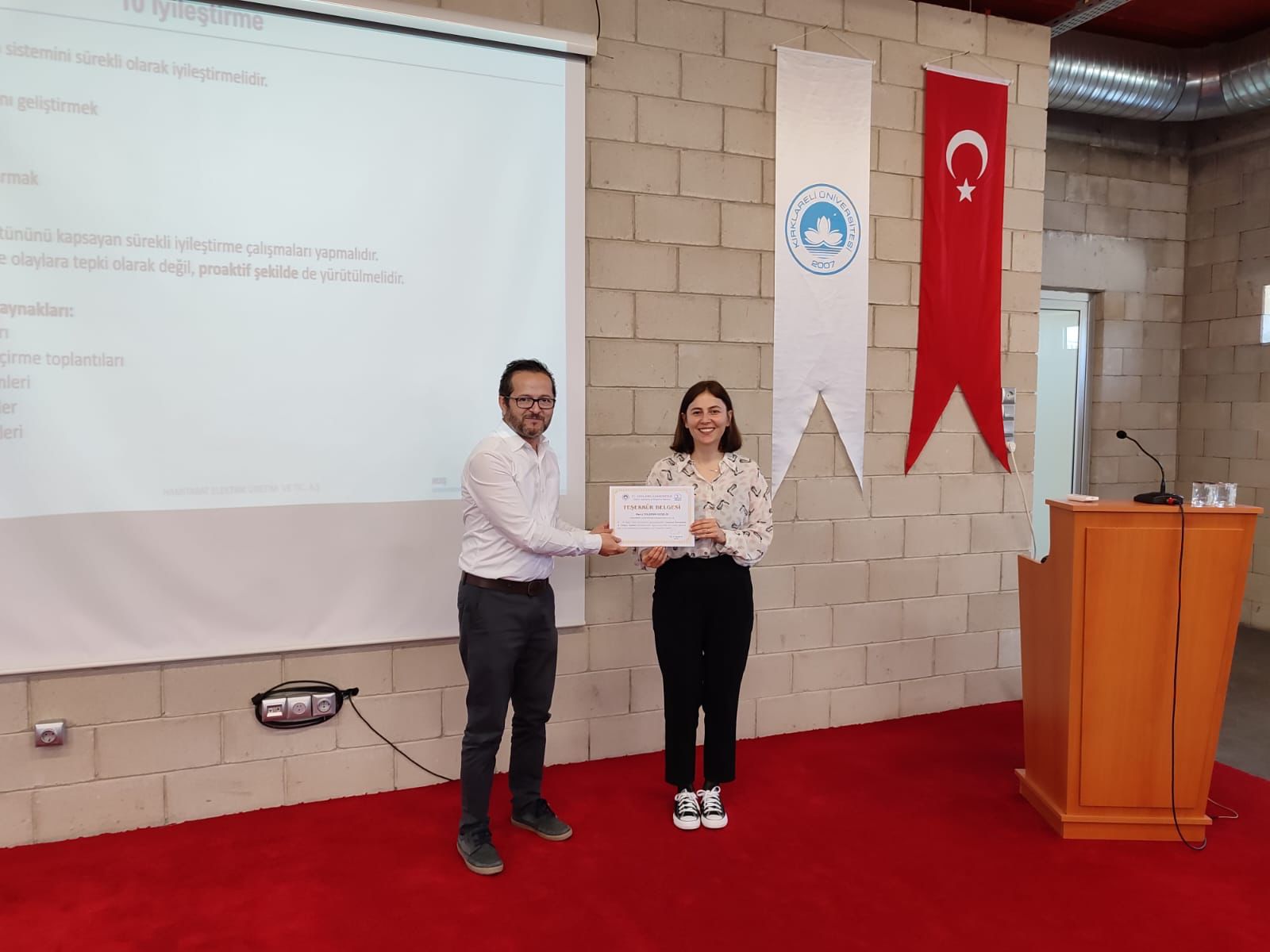 İş Sağlığı ve Güvenliği Programı öğrencilerin katılım gösterdiği etkinlik, Öğr. Gör. Ömer GÜLTEKİN ‘in teşekkür belgesini takdim etmesiyle son bulmuştur.