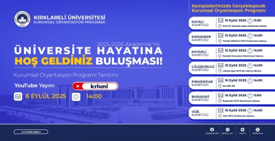 ![]() | ÜNİVERSİTEMİZ TÜM KAMPÜSLERİNDE YÜRÜTÜLEN 2025-26 AKADEMİK YILI KURUMSAL ORYANTASYON PROGRAMI... Eğitim Öğretim Geliştirme Koordinatörlüğü 17/09/2025 329 Okunma |